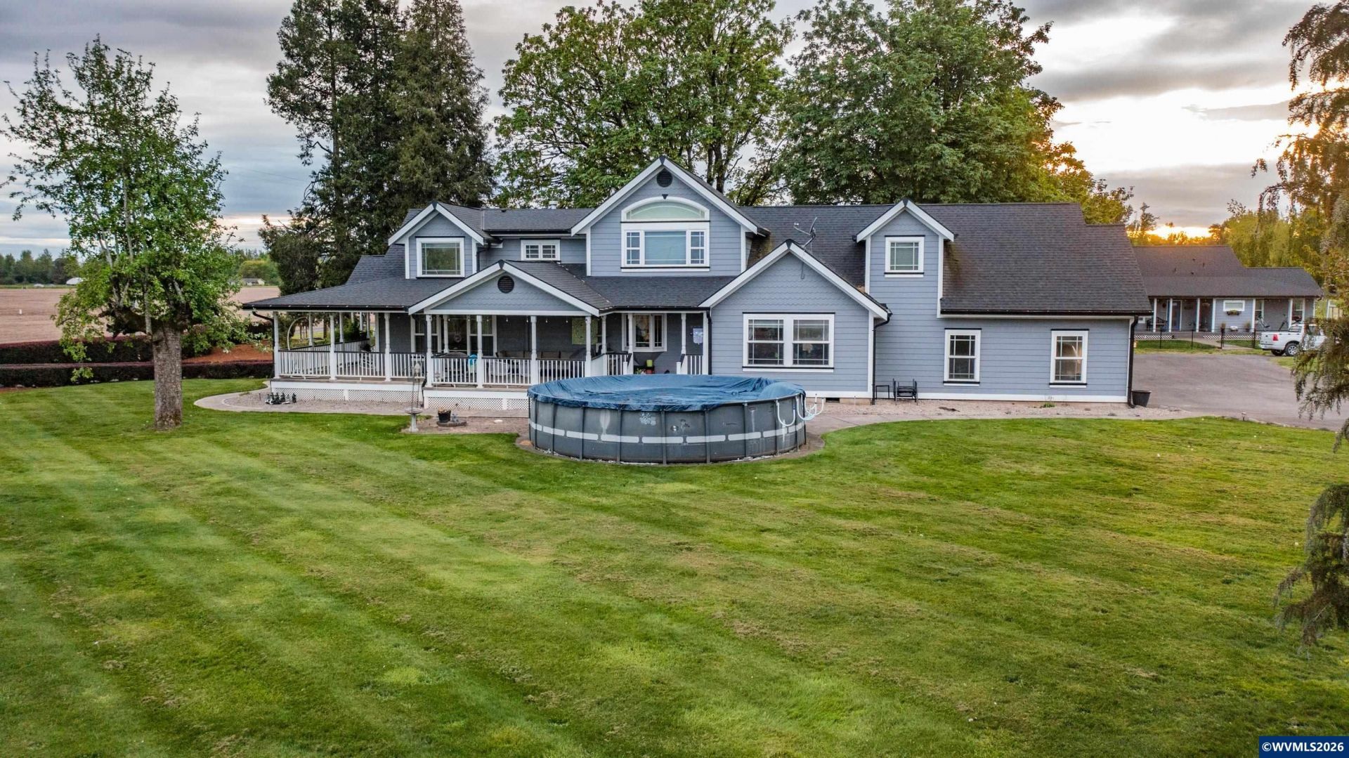 Luxury 4bd/4ba home on 19+ acres, 17.5 certified organic by Oregon Tilth. Includes a 1,400 sqft pool house under hardship for dual living, quartz countertops, 2 year-round ponds, a 30x60 barn with its own power meter, and a fenced garden. Features an entertainer's kitchen, walk-in shower, jetted tub, and wrap-around porches for serene country living. A perfect blend of luxury and sustainability. Make this property yours! Owner is a licensed Oregon broker.